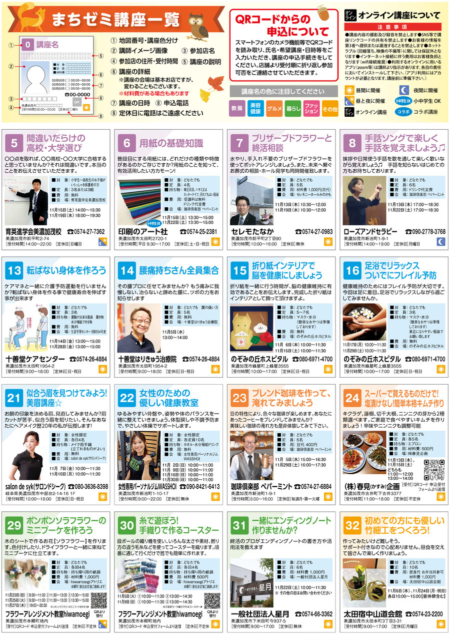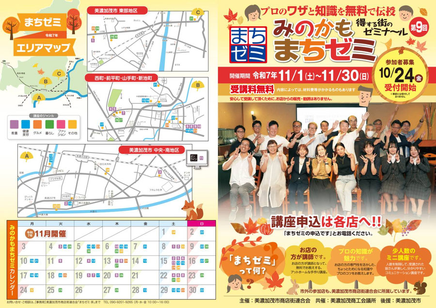 恒例となりましたまちゼミが11/1(水)から開催されます。